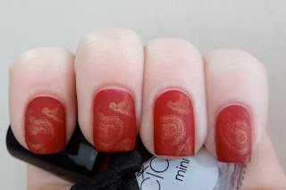 Hey everyone! I'm out of town for the rest of the week, so please forgive the short posts. Today's challenge calls for nails inspired by a pattern. I decided on a paisley pattern, since I've been wanting to use my paisley stamp for a long time.