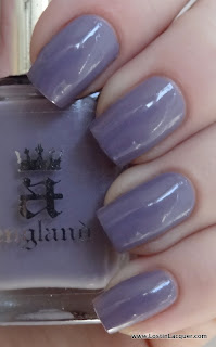 This first polish is my untried creme. This is A England Guinevere. I'm not sure how I manage to leave my A Englands untried...they're always perfection and Guinevere is no exception. This dusty darker tone lilac creme applied flawlessly in two smooth, easy coats. The first two pictures are taken in natural sunlight, the third picture is in the shade.
