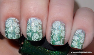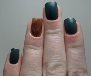 Deborah Lippmann Hannah. Two coats. This is described as a "Hapless Hunter Green." This is my favorite of the polishes from this set, and I can't say I own anything like it! The formula was great, no complaints.
