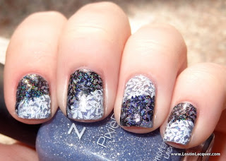 Deborah Lippmann Shoshanna. Two coats. According to Deborah Lippman's site, this is a "virtuous vivid violet." It looks a lot like some of the periwinkle leaning lilac type shades coming out this spring, except it has a