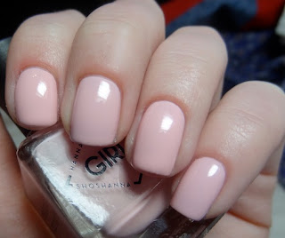 Deborah Lippmann Marnie. Three coats. This is described as a "prim and proper pink." I suppose it is. Kind of a boring color, and a not so great formula. This was the hardest of the four to apply.