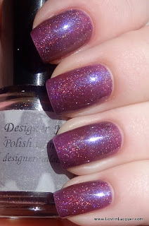 Royally Confused. Three coats. This plum holographic is truly gorgeous! In addition to being a lovely shade of plum and holographic, it also has a soft blue duochrome. It's like a jelly duochrome version of DS Extravagance. The formula was a bit on the thick side, but totally manageable.
