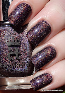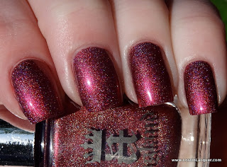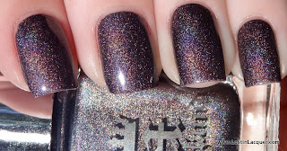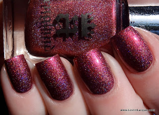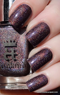 A England Sleeping Palace. One coat. I'll start with my favorite of the four. Sleeping Palace is a dark plum holographic. Of the four, this was the most holographic. As you can see, it just glows...it's beautiful. And the formula was perfect.