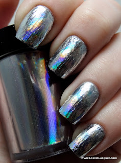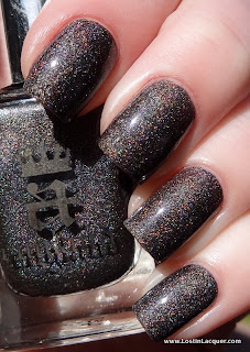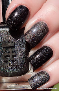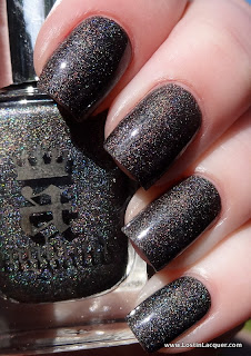 A England Fated Prince. Two coats. This is the only polish of the four that wasn't opaque at one coat, but it was pretty close! Fated Prince is a charcoal holographic. It reminded me of A England Bridal Veil when I saw it in the bottle, so I thought I'd do a comparison of the two!