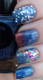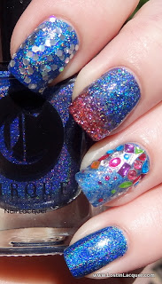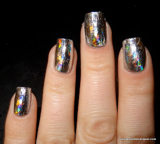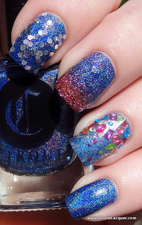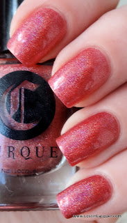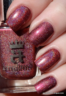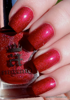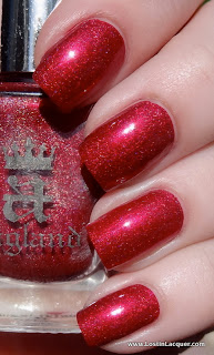 A England Rosebower. Two coats. This bright red holographic polish was opaque at two coats, but I used two to even things out. Of the four, this had the trickiest formula to work with, but this is A England we're talking about so the formula was still great. Rosebower is also the least holographic of the bunch, though it's more holographic than it looks in these photos.