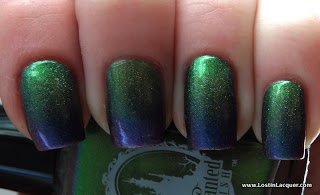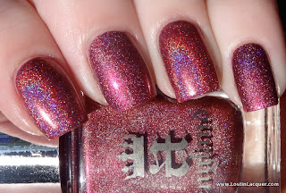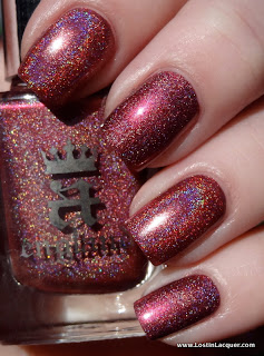 The base color on Vesuvius and Briar Rose are very similar, however, Vesuvius is substantially more holographic. These both had a fantastic formula, though Briar Rose is on the thicker side. My pick? Versuvius, because I'm a huge sucker for linear holos!